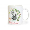 Výška: 9,5 cm, průměr 8 cm, objem: 330 ml, hmotnost 340 g, materiál: keramika, možno mýt v myčce.